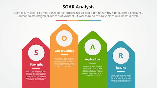 Khái niệm infographic phân tích SOAR cho bản trình bày slide với mũi tên hướng lên trên với danh sách 4 điểm theo phong cách phẳng