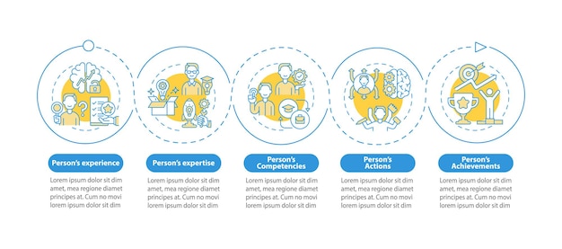 Mẫu infographic vector khái niệm vị trí xã hội. Các yếu tố thiết kế phác thảo bản trình bày vai trò cộng đồng. Trực quan hóa dữ liệu với 5 bước. Biểu đồ thông tin dòng thời gian quy trình. Bố cục quy trình làm việc với các biểu tượng đường thẳng